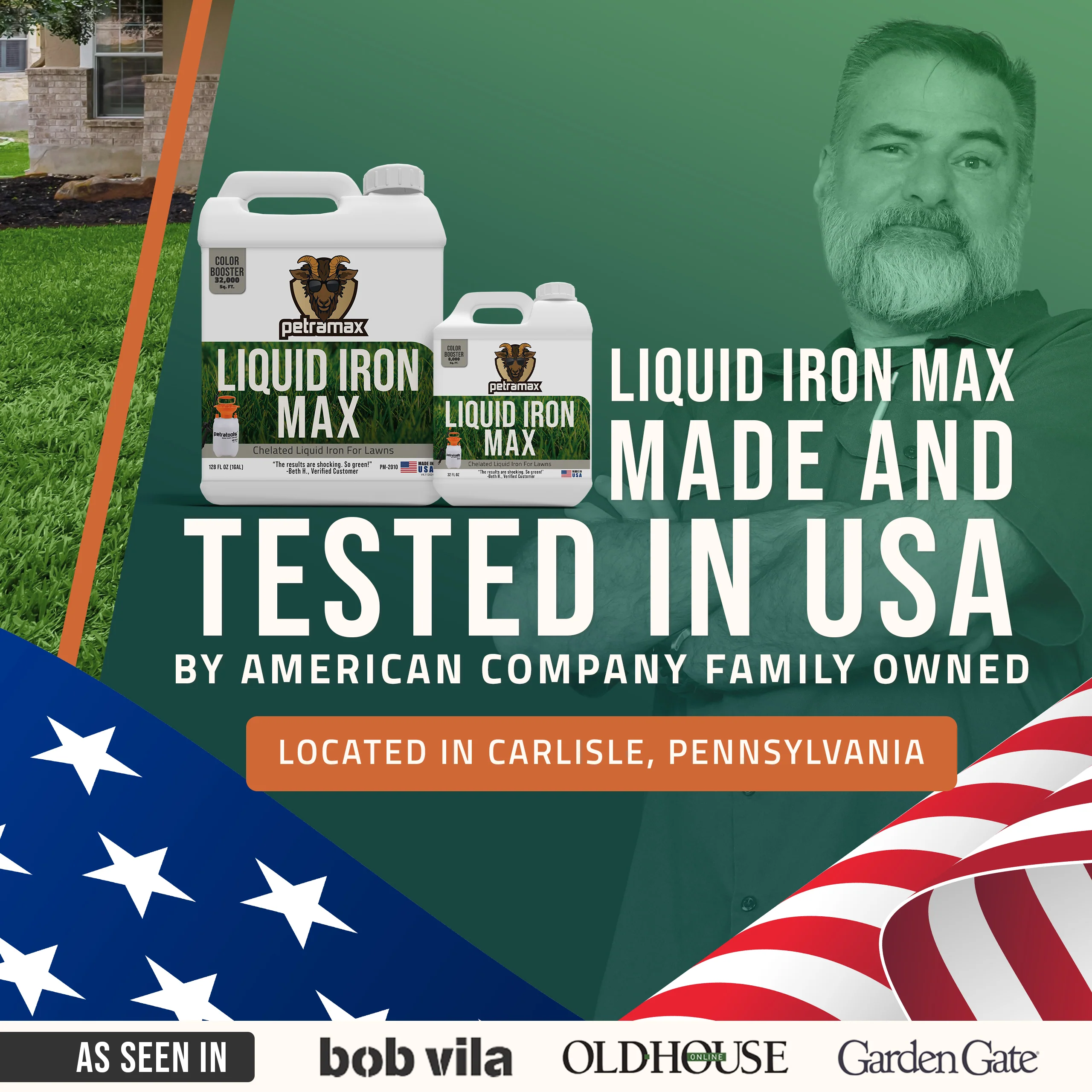 PetraTools’ Liquid Iron - Liquid Lawn Solution is an innovative way to restore a true green color back in your grass. Our liquid iron for lawn fights off algae and helps prevent the yellowing of your lawn while adding nutrients. This lawn care solution helps you keep your plants looking their best by increasing the health of their roots and leaves. It’s a sugar-based chelated solution, which means it resists yellowing, unlike many lawn care solutions. Our liquid iron for lawn care is EDTA-free, allowing the solution to penetrate deeply into the ground where it can be used by your plants for nutrition.