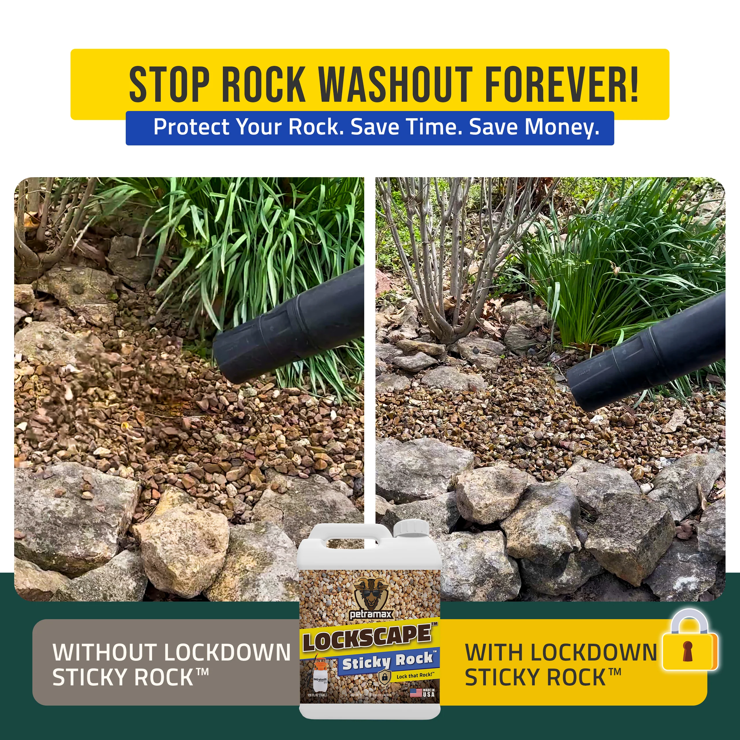 PetraMax Lockdown Rock Glue offers unparalleled convenience for your landscaping needs, securing mulch, gravel, stones, straw, and chips in place for months with ease. Say goodbye to the hassle of constantly cleaning and sweeping mulch off your walkways, sidewalks, patios, and porches. Once your mulch is locked in place, you can easily use mulch paint or colorant to maintain its rich, contrasting color. Our adhesive not only keeps your materials secure but also enhances the aesthetic appeal of your landscape. Perfect for various applications, PetraMax Lockdown Rock Glue works wonders on pea gravel, dirt roads, decomposed granite, playgrounds, and more. Whether you need a ready-to-use mulch dye, a decomposed granite stabilizer, or a pathway stabilizer, our product has you covered. Key features include superior adhesion for rocks, stones, and gravel, prevention of erosion and displacement, and water permeability, making it ideal for walkways, patios, and playgrounds. Get PetraMax Lockdown Rock Glue today and experience the difference in your landscaping projects.