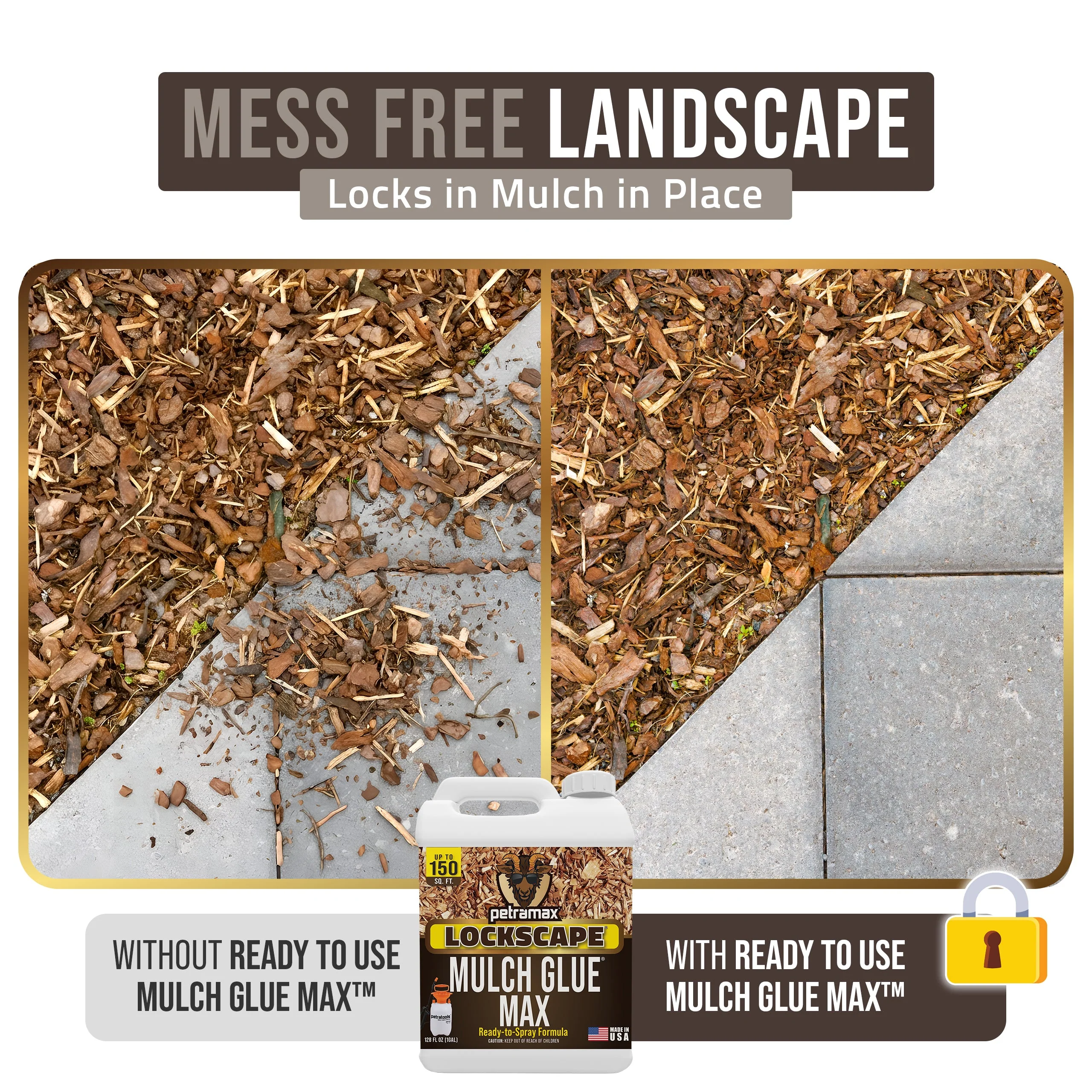 Lockscape’s ready-to-use mulch glue keeps the job simple while giving you a cleaner, longer-lasting finish. Just open the bottle, pour it into your sprayer, and apply with no measuring or mixing required. The formula works its way between mulch pieces to create a strong hold that helps prevent shifting, weed growth, washout, and messy bare spots in areas like sloped beds, tree rings, pathway borders, and spots near downspouts. It is also a non-toxic, plant-safe formula that is safe to use around pets and kids once fully dry, and as it cures, it leaves behind a slight shine that gives your mulch a fresh, polished look.